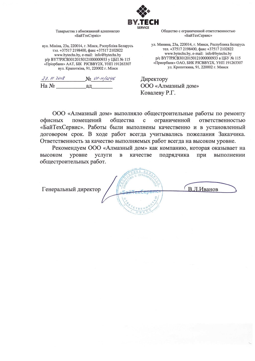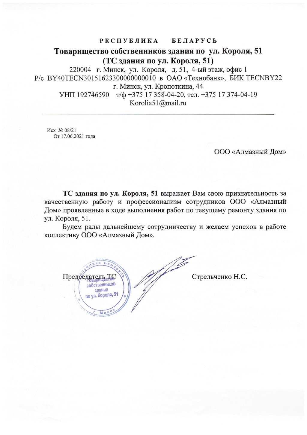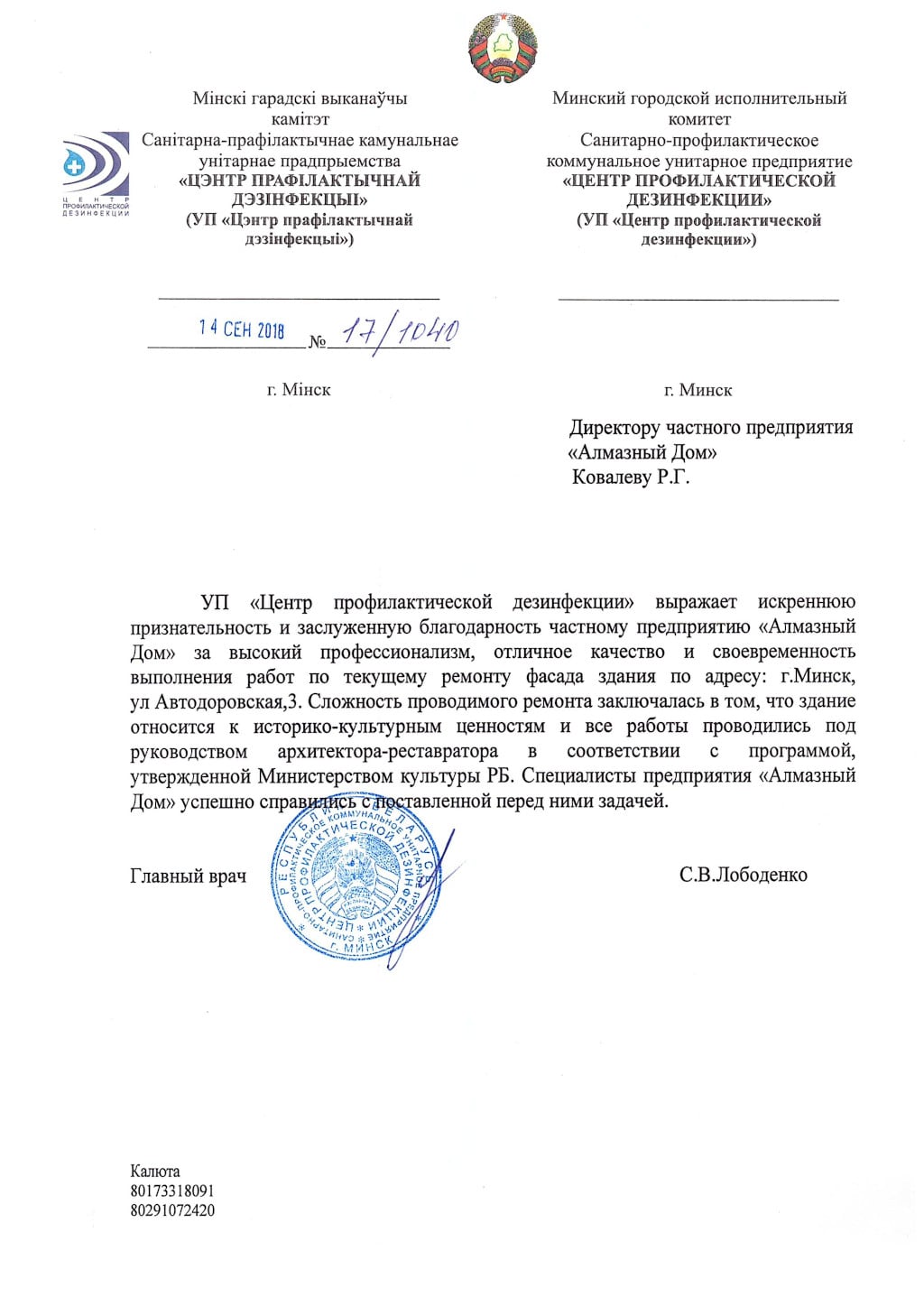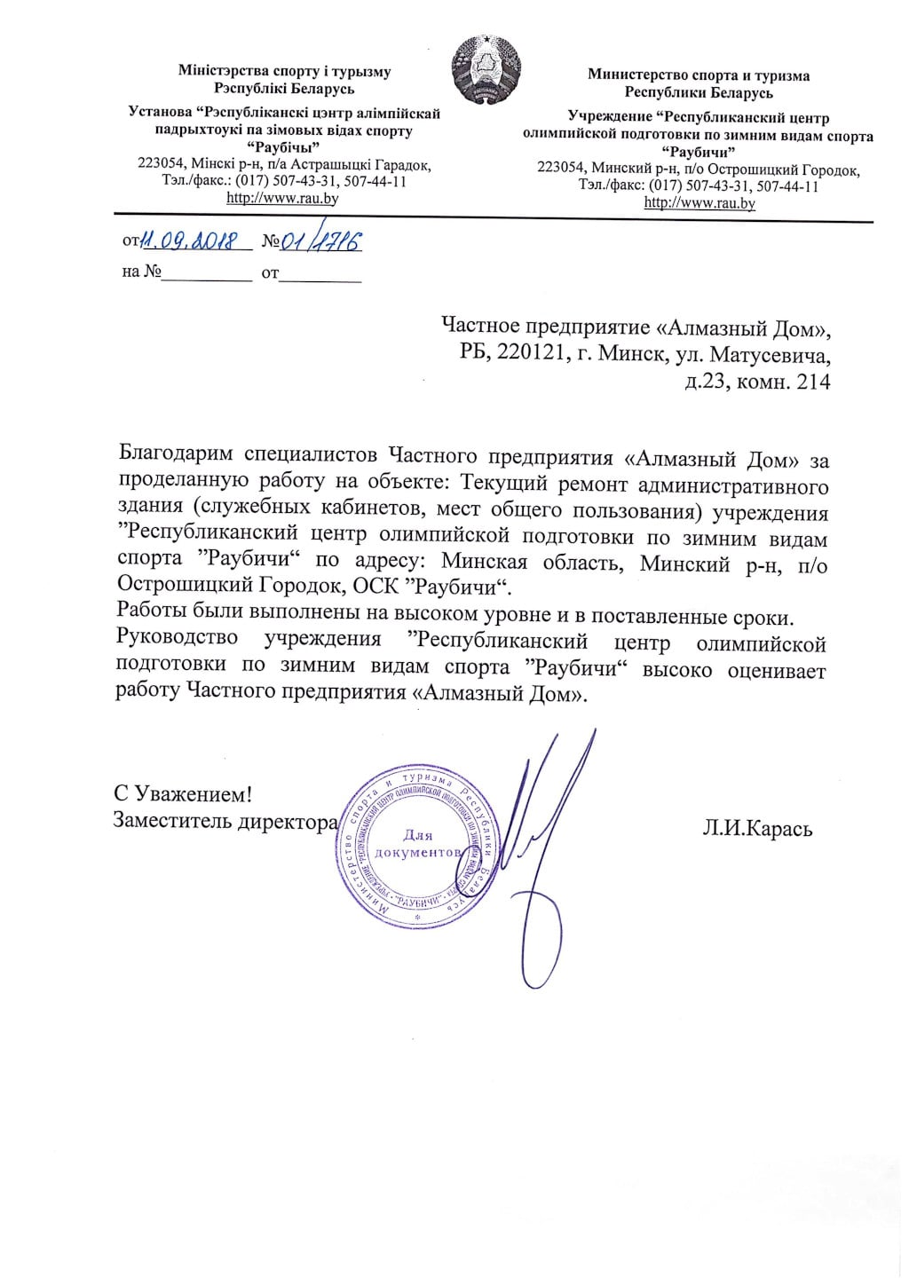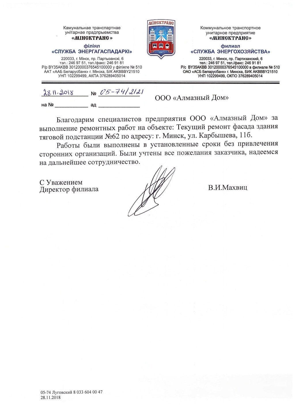 РБ, 220121, г. Минск, ул. Серафимовича д.11, комн. 300
